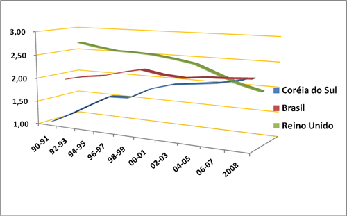 6º Gráfico: Coréia do Sul, Brasil e Reino Unido: 9º, 10º e 11º lugares